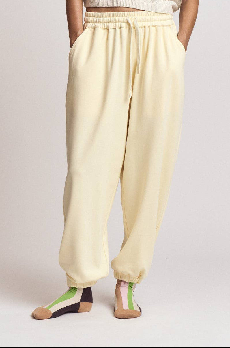 Soft, easy sweat pants made from a rib and terry blend with a relaxed feel and generous volume through the legs. Designed for everyday comfort with an easy drape that works for lounging, travel, or styled as a set with the matching top.