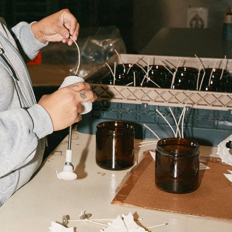A weekend in the mountains, sun gleaming through the canopy. Notes of sage, moss, and lavender. Introducing our new and reformulated Large Concentrated Candles – we took our best-selling Classic Line scents and increased the fragrance level for stronger throw in your biggest spaces. Our 12.5 oz Large Candles are hand-poured into apothecary-inspired amber jars with our signature kraft label and a brass lid. Our candles are simple - they're all made with 100% domestically grown soy wax, fine fragrance oils, and cotton-core wicks. The fragrances we use are paraben-free, phthalate-free, and never (ever) tested on animals. Burns for 60-70 hours.