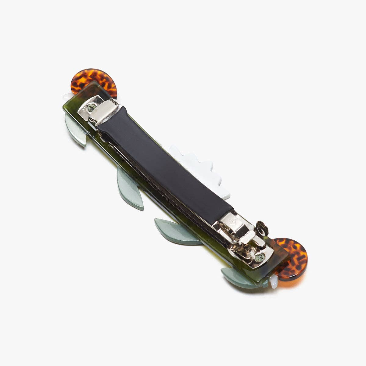 Each barrette is uniquely cut & assembled by hand — slight variations in color and pattern are natural and part of its charm