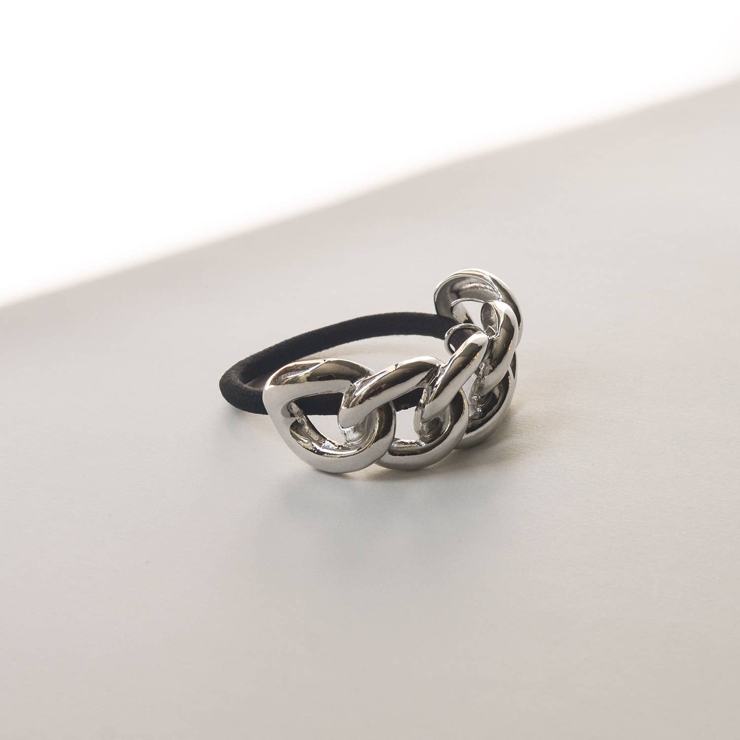 Modern and edgy, this chain link metal hair tie makes a bold yet polished statement. Designed with a sleek linked pattern and a high-shine silver finish, it elevates everyday hairstyles with effortless sophistication. The elastic band ensures a secure, comfortable hold — perfect for both casual and dressed-up looks.