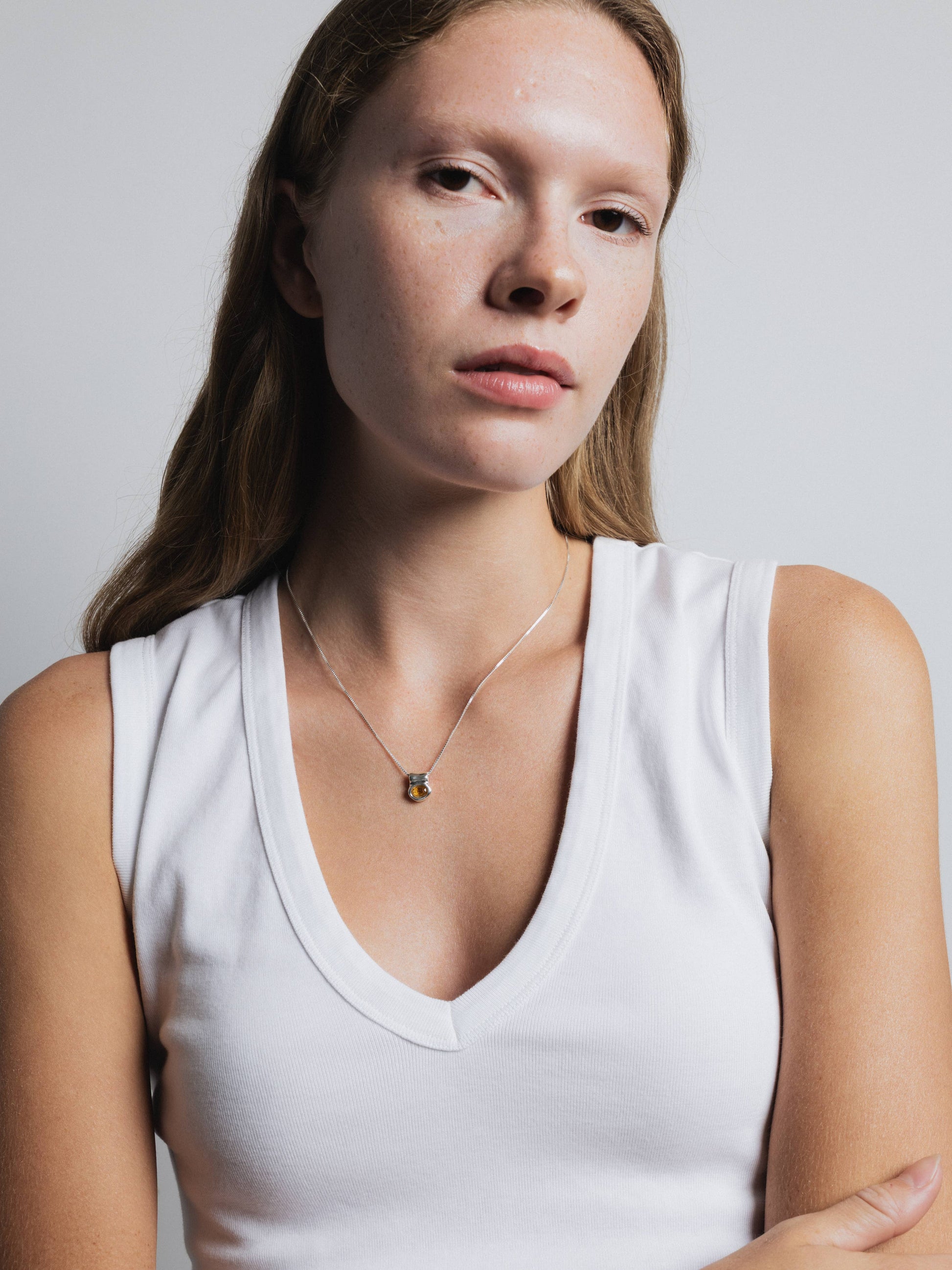 Elegant and understated, this oval pendant necklace features a warm citrine stone set in recycled 925 sterling silver. Paired with a delicate sterling silver baby box chain, it brings a soft touch of color and shine — perfect for everyday wear or layering with your favorite silver pieces.