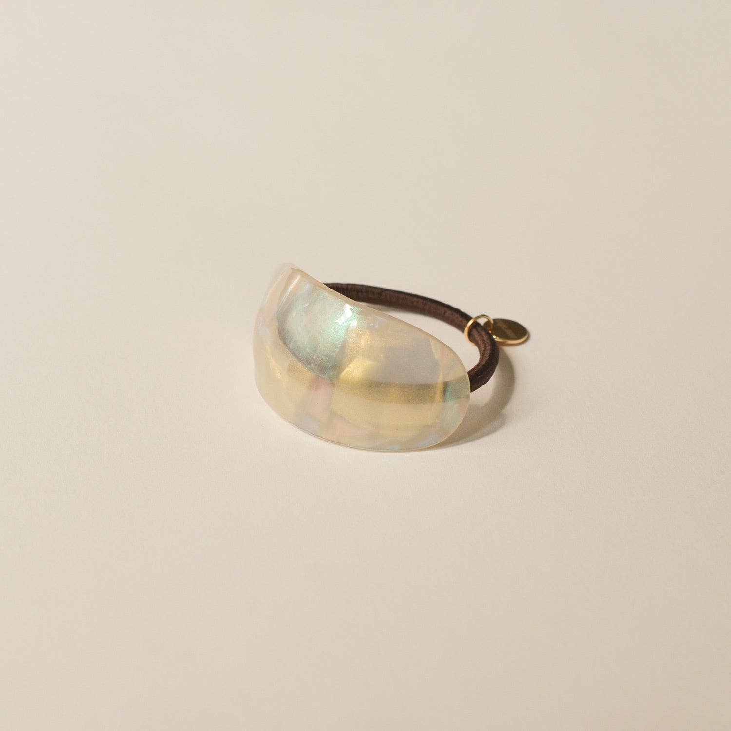 Delicate and dreamy, this curved resin hair tie features a luminous iridescent finish that catches the light beautifully. Its smooth, curved shape adds a touch of sophistication to any hairstyle, while the soft elastic ensures a secure, comfortable hold. Perfect for everyday wear or adding a subtle glow to special occasions.