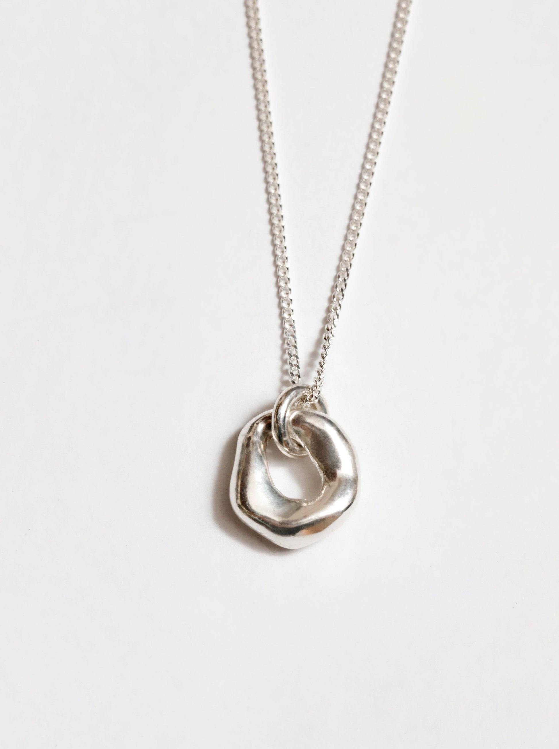 Artful and modern, this necklace features a sculptural textured oval pendant crafted from recycled sterling silver. It hangs from an 18" sterling silver curb chain for a polished yet organic look — the perfect everyday statement with a touch of edge.