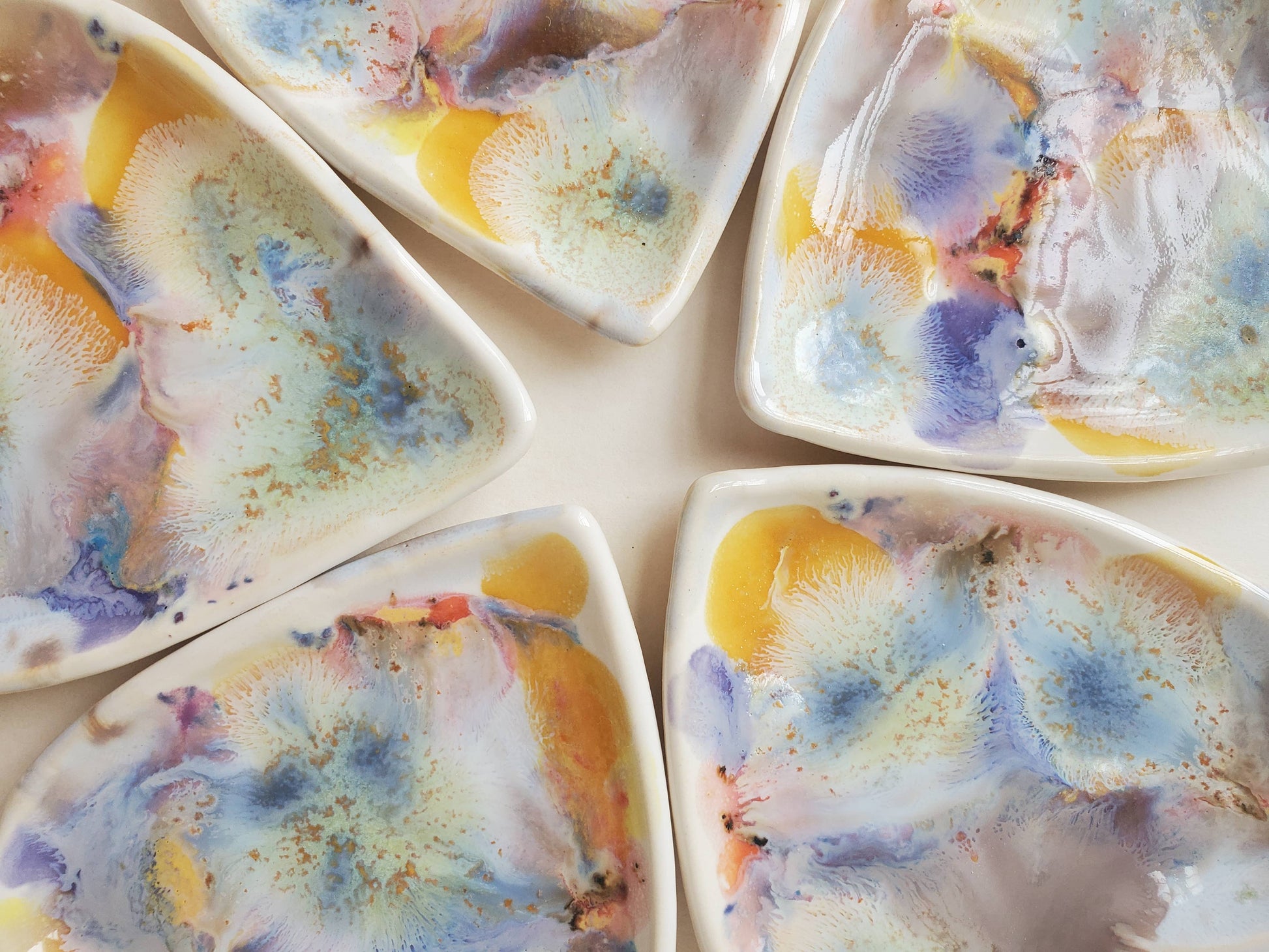 Each dish varies slightly in pattern and color