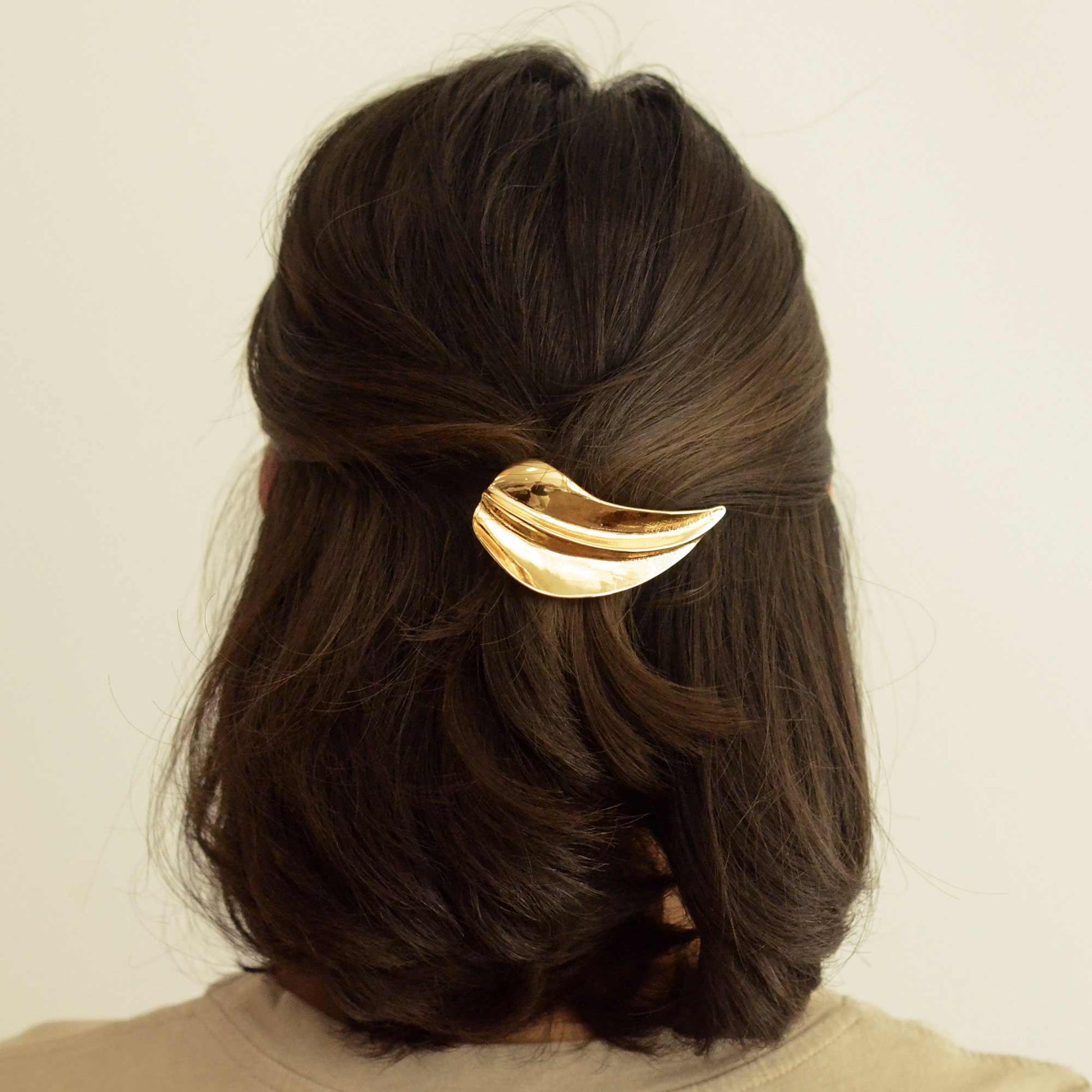 This barrette hair clip is made from durable metal with a glossy finish. It features metal leaf for a natural and elegant appearance.