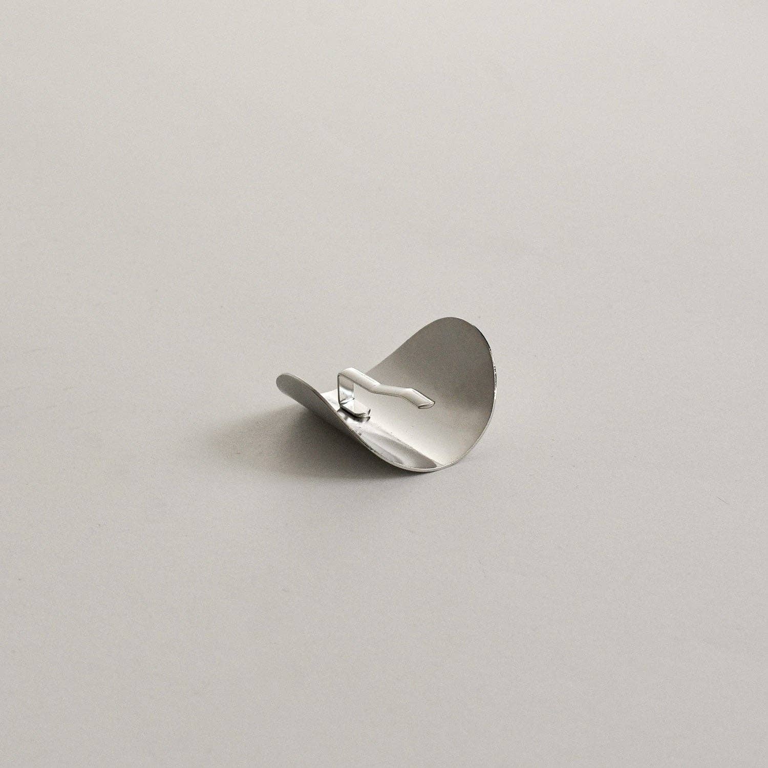 Minimal and refined, this sculpted metal hair cuff brings modern sophistication to any hairstyle. Designed with a smooth, oval-shaped silhouette and brushed silver finish, it wraps elegantly around ponytails or buns for a sleek, polished look. Lightweight and versatile, it’s the perfect everyday accessory for effortless style.