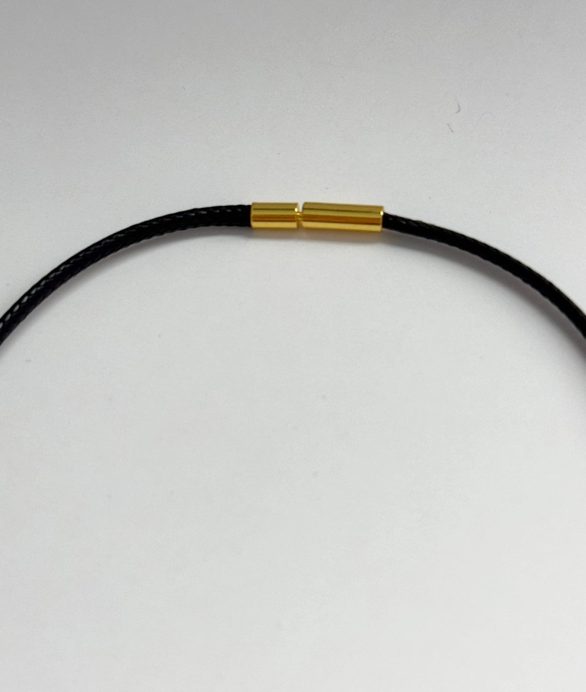 Thin black wax leather rope necklace with gold plated closure featuring real natural pearl and baroque pearl charms Measures 16” long