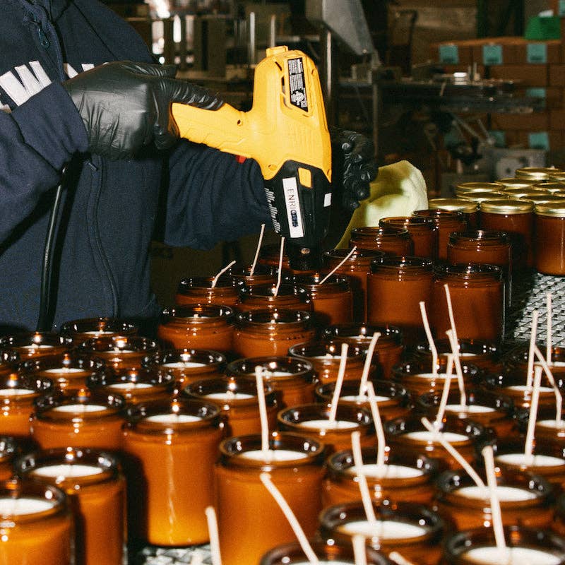 Our candles are simple - they're all made with 100% domestically grown soy wax, fine fragrance oils, and cotton-core wicks. The fragrances we use are paraben-free, phthalate-free, and never (ever) tested on animals.