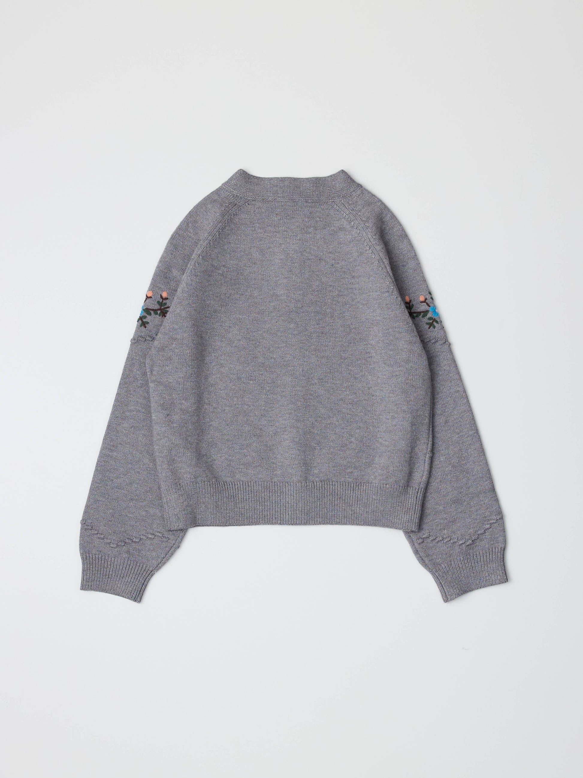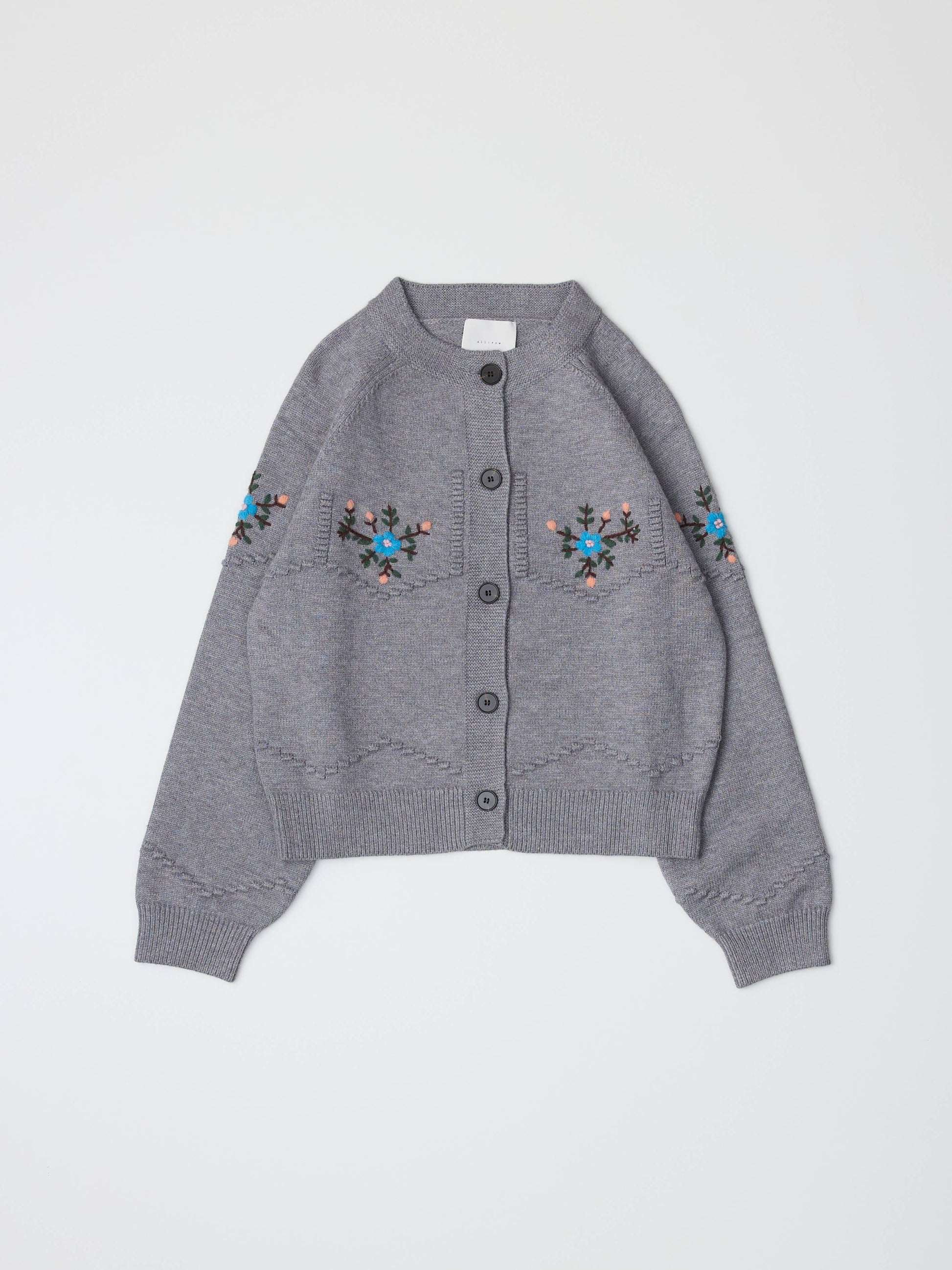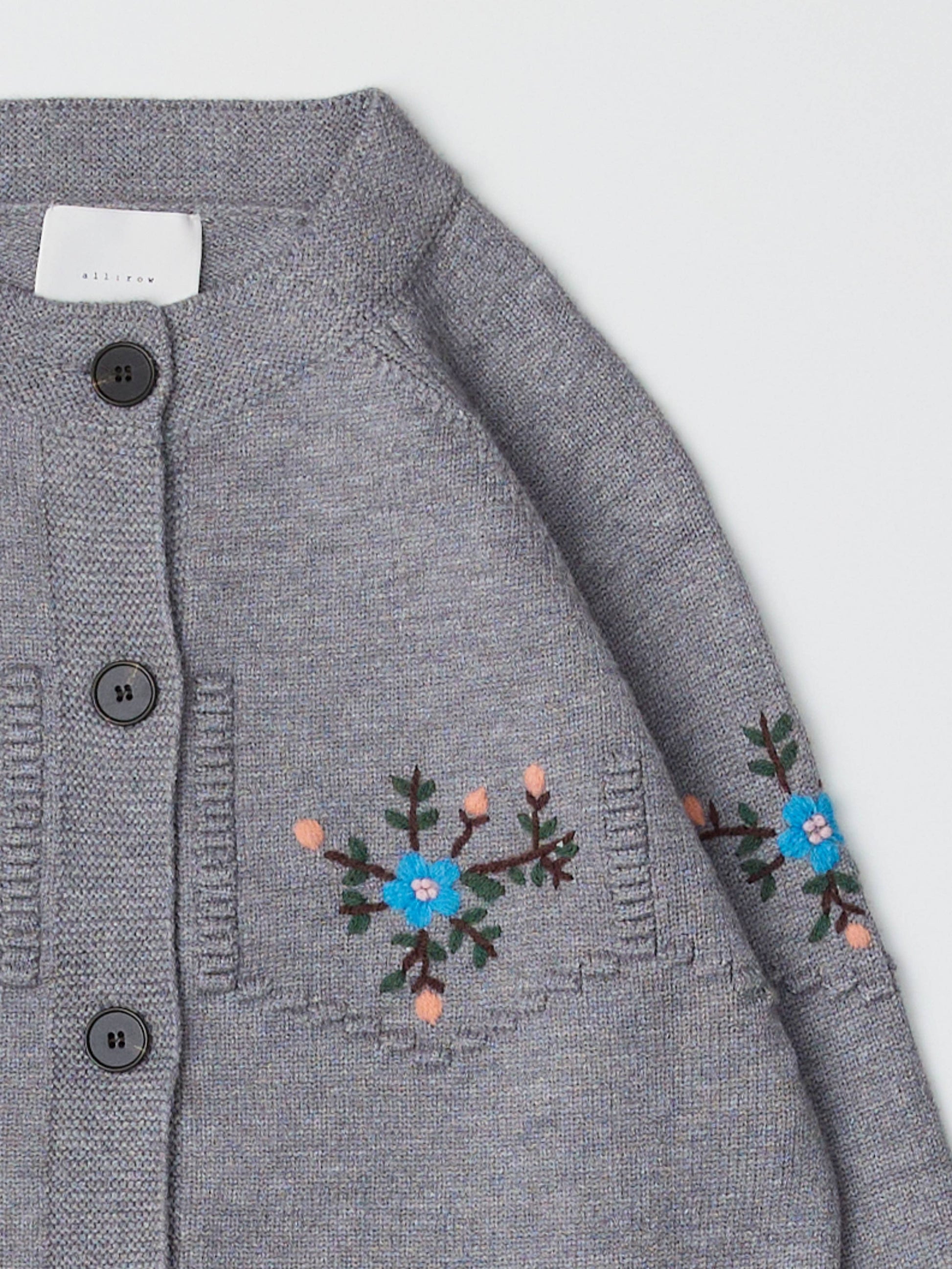Add a touch of charm to your cool-weather wardrobe with this heather gray embroidered cardigan. Crafted from a soft midweight knit, it features delicate floral embroidery and a classic button-down front for a textured, feminine finish. This cardigan blends comfort and elegance in one effortless piece.