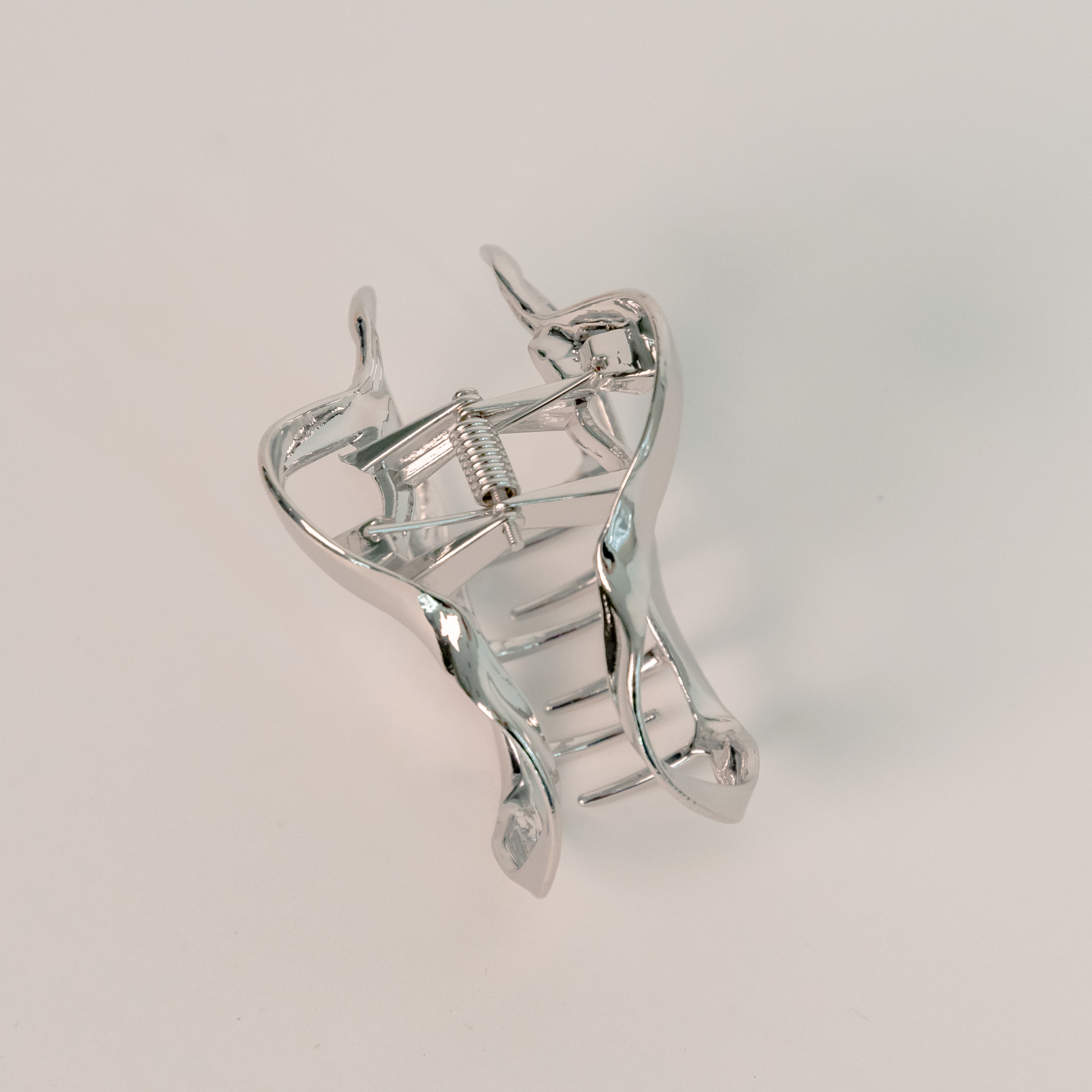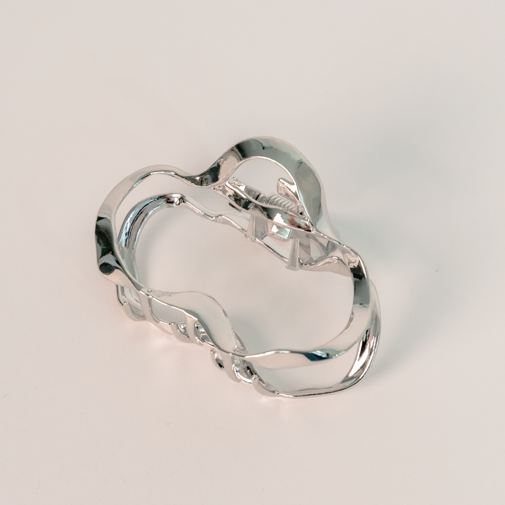 • Wave Shape Hair Claw Clip with a smooth, polished silver finish.